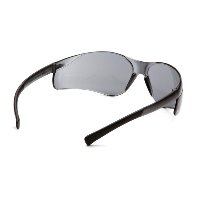 Pyramex Safety - Ztek - Gray Frame/Gray Lens - Economical wrap-around single lens with panoramic view. Straight back flexible temples provide outstanding fit. Soft, non-slip rubber temple tips. Integrated nose piece. Lenses are coated for superior scratch resistance. Lenses provide 99% protection against harmful UV rays.
