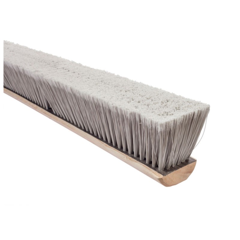 24" Grey Flagged Poly Floor Brush with 60" wood handle with metal thread. For sweeping smooth, highly polished, wood, or smooth concrete. Flagged bristles remove the finest debris. CAUTION: Not for use with oild based sweeping compound.