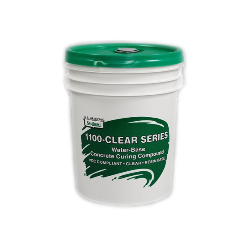 1100 water-based concrete curing compound is formulated from hydrocarbon resins and may be used on the interior, exterior, vertical, and horizontal concrete surfaces. Once applied, 1100 forms a premium-grade membrane that retains an optimum amount of water in freshly placed concrete for complete hydration of the cement. NOTE: After approximately four weeks, the membrane begins to chemically break down when exposed to UV rays. The membrane will eventually dissipate from the surface. This process is sped up by exposure to traffic and UV light, as well as weathering conditions. This product is formerly known as 1100-CLEAR