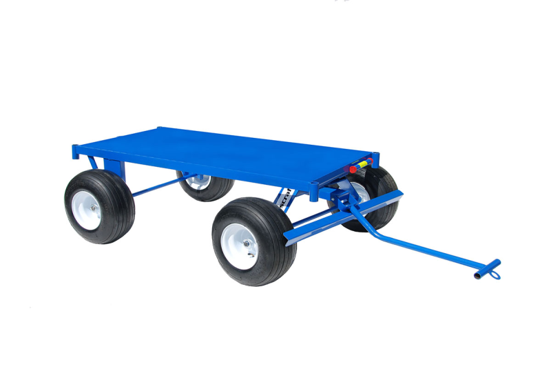 The FWT Four Wheel Utility Trailer with Steel Deck is an all-around versatile trailer for all types of jobs. This industrial strength trailer is perfect for transporting large loads, from plywood, pallets of shingles, and construction materials, to hand tools, generators, air compressors, and more. This trailer features all-welded steel construction for maximum strength and durability. The short curved handle allows for easy turning and maneuverability. The handle features a mechanical brake that stops trailer movement when the handle is dropped. The trailer also features a steel deck and pipe wells to house corner stakes (not included, but offered as an add-on component) to secure loose loads. This trailer can do even more! Opt to expand the load capacity with the Four Wheel Trailer Extension Kit (see FXT series model sold separately). Additional wheel options are available. Wheel assembly required. Multiple deck sizes are available to perfectly suit your job site. You will use this trailer for almost everything!