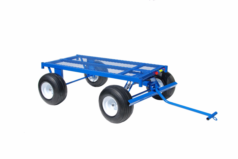 The FWT Four Wheel Utility Trailer is an all-around versatile trailer for all types of jobs. This industrial strength trailer is perfect for transporting large loads, from plywood, pallets of shingles, and construction materials, to hand tools, generators, air compressors, and more. This trailer features all-welded steel construction for maximum strength and durability. The short curved handle allows for easy turning and maneuverability. The handle features a mechanical brake that stops trailer movement when the handle is dropped. The trailer also features a mesh deck and pipe wells to house corner stakes (not included, but offered as an add-on component) to secure loose loads. This trailer can do even more! Opt to expand the load capacity with the Four Wheel Trailer Extension Kit (see FXT series model sold separately). Additional wheel options are available. Wheel assembly required. Multiple deck sizes are available to perfectly suit your job site. You will use this trailer for almost everything!