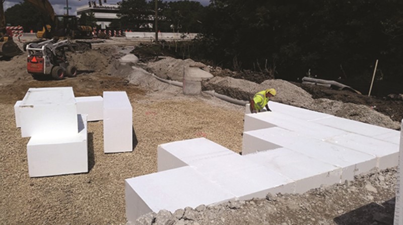 Geofoam consists of closed-cell expanded polystyrene (EPS) and meets or exceeds the requirements of ASTM D6817 Standard Specification for Rigid Cellular Polystyrene Geofoam. Thanks to a weight that is lighter than that of most fill materials, InsulFoam® GF is cost-effective and does not typically require surcharging, preloading, and staging often necessary in construction applications. InsulFoam® GF is environmentally friendly and 100% recyclable, containing no HCFCs or formaldehyde.